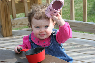 Cheyenne posing. She's getting so big-- I went to pick her up the other day, and I couldn't believe it-- her feet hit my knees when I held her! She's reading a lot of words now, and she loves to "read" aloud to me for HOURS every day! Thankfully, as long as I'm in the room, she's satisfied that I'm listening, and I can go about my business.
