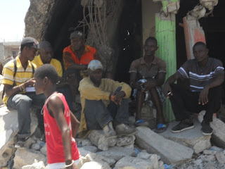 This used to be the park near the Presidential Palace. Now full of refugees. You can see one of the palace domes in the background.